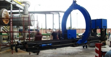 The aerial bundle extractor 35t mod. Bundle extractor Super IdroKid Extractor weights only 5400 kg. (11.900 lbs) and is long 8000 mms (26,3 feet), but clue to its unique and particular construction in high resistance steel, it is able to pull and push tube bundles till 7700 mms. (25,26 feet) of length, 35 tons of bundle weight up to 2000 mms. (6,56 feet) of bundle diameter with a pulling force of 50 tons.